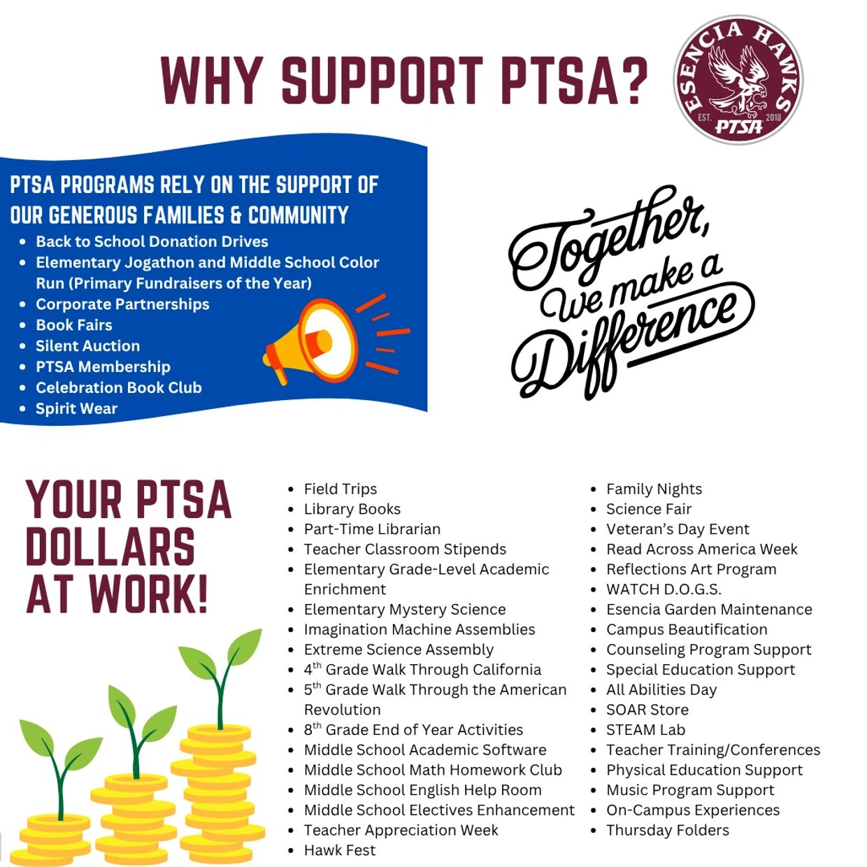 PTSA programs are funded solely by the generosity of our families and community. Use the button below to support enriching PTSA programs for all Hawks in grades TK-8.
